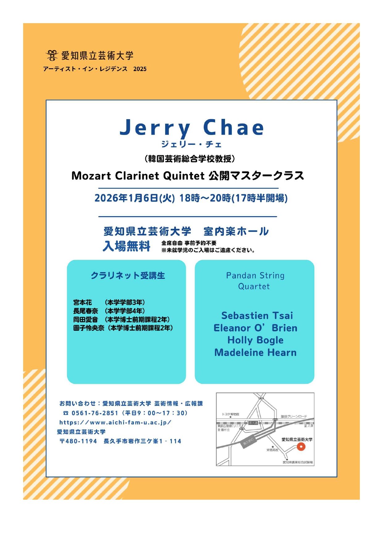 愛知県立芸術大学 アーティスト・イン・レジデンス2025 Jerry Chae 教授によるクラリネット公開マスタークラスのご案内