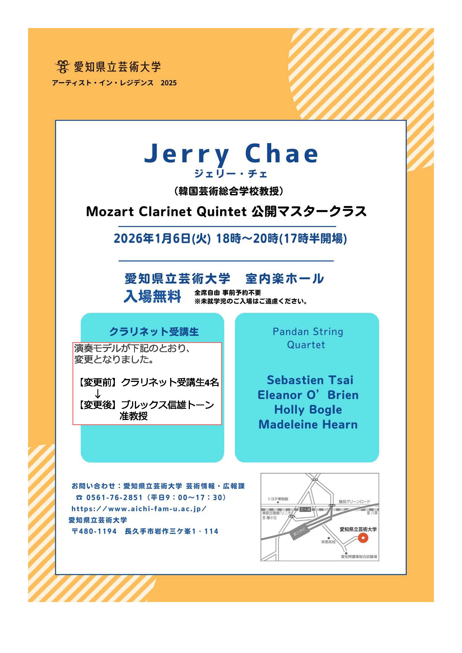 【2025.12.23更新】アーティスト・イン・レジデンス2025 Jerry Chae 教授によるクラリネット公開マスタークラス