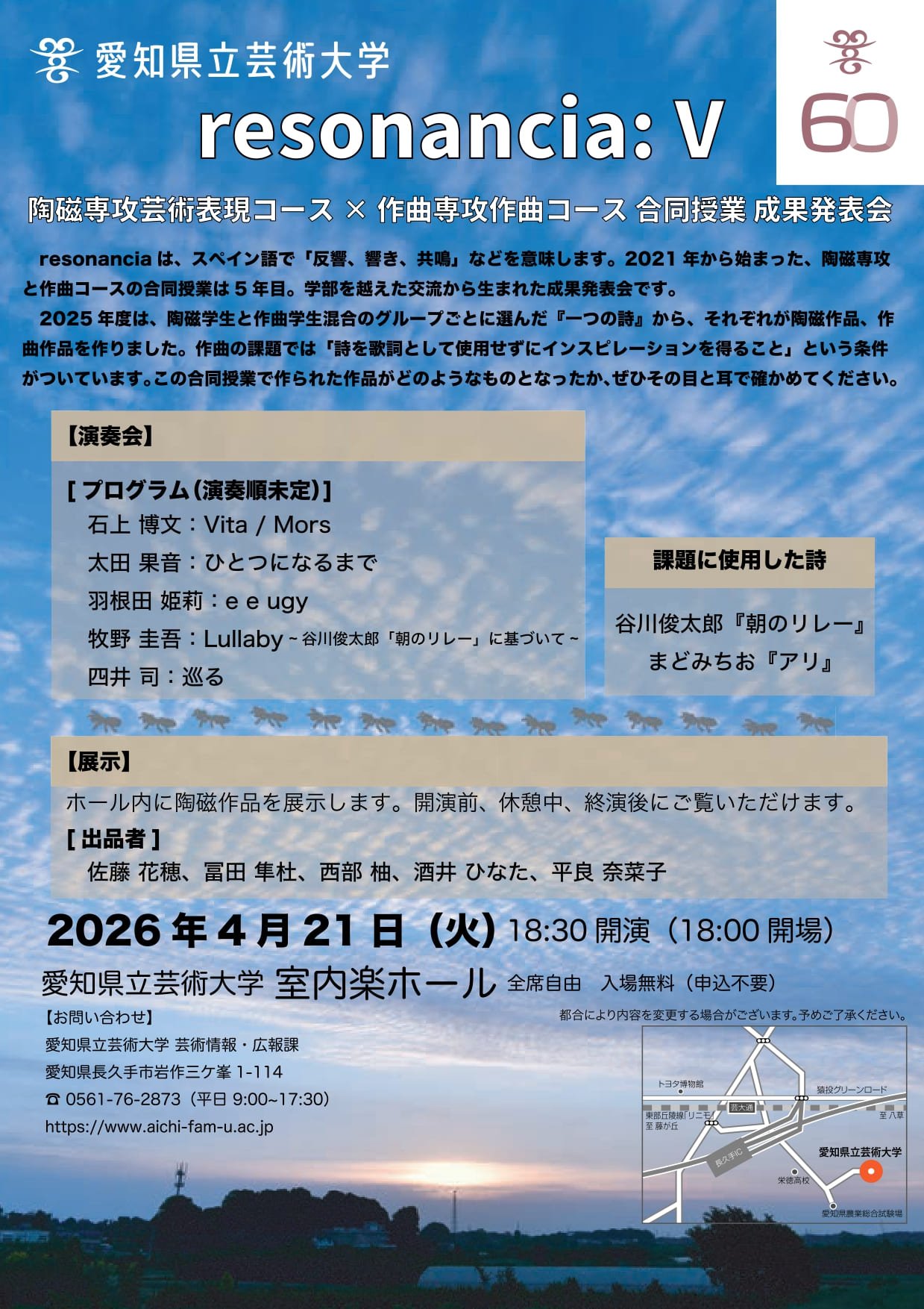 resonancia: Ⅴ 陶磁専攻芸術表現コース×作曲専攻作曲コース 合同授業 成果発表演奏会