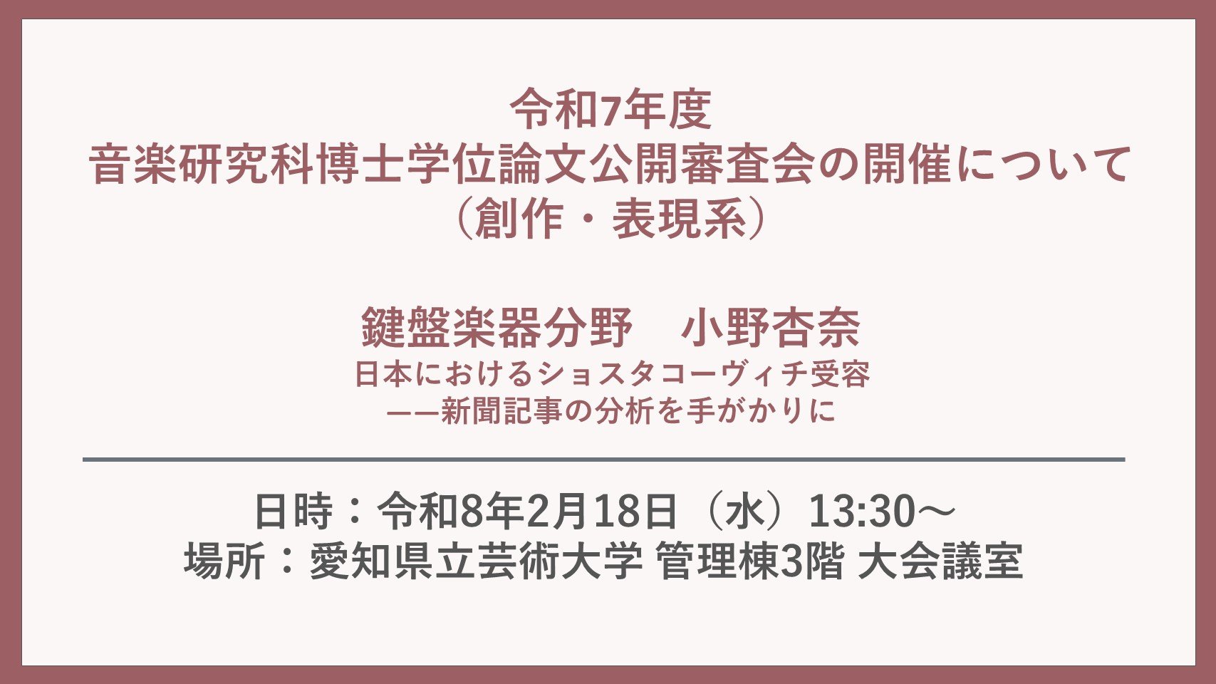 令和7年度音楽研究科博士学位論文公開審査会の開催について(創作・表現系)