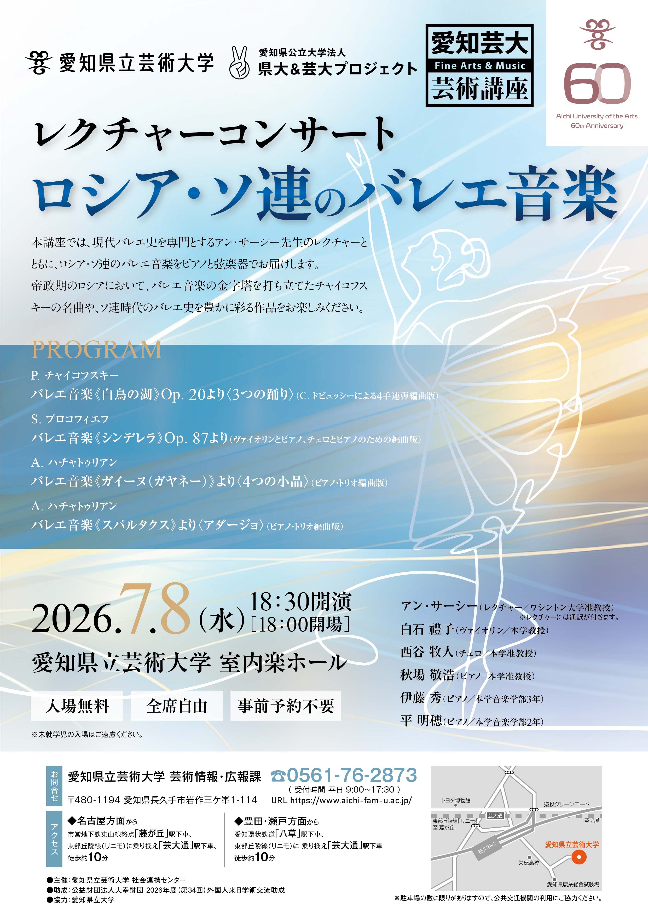 愛知県立芸術大学芸術講座レクチャーコンサート 《ロシア・ソ連のバレエ音楽》の開催について