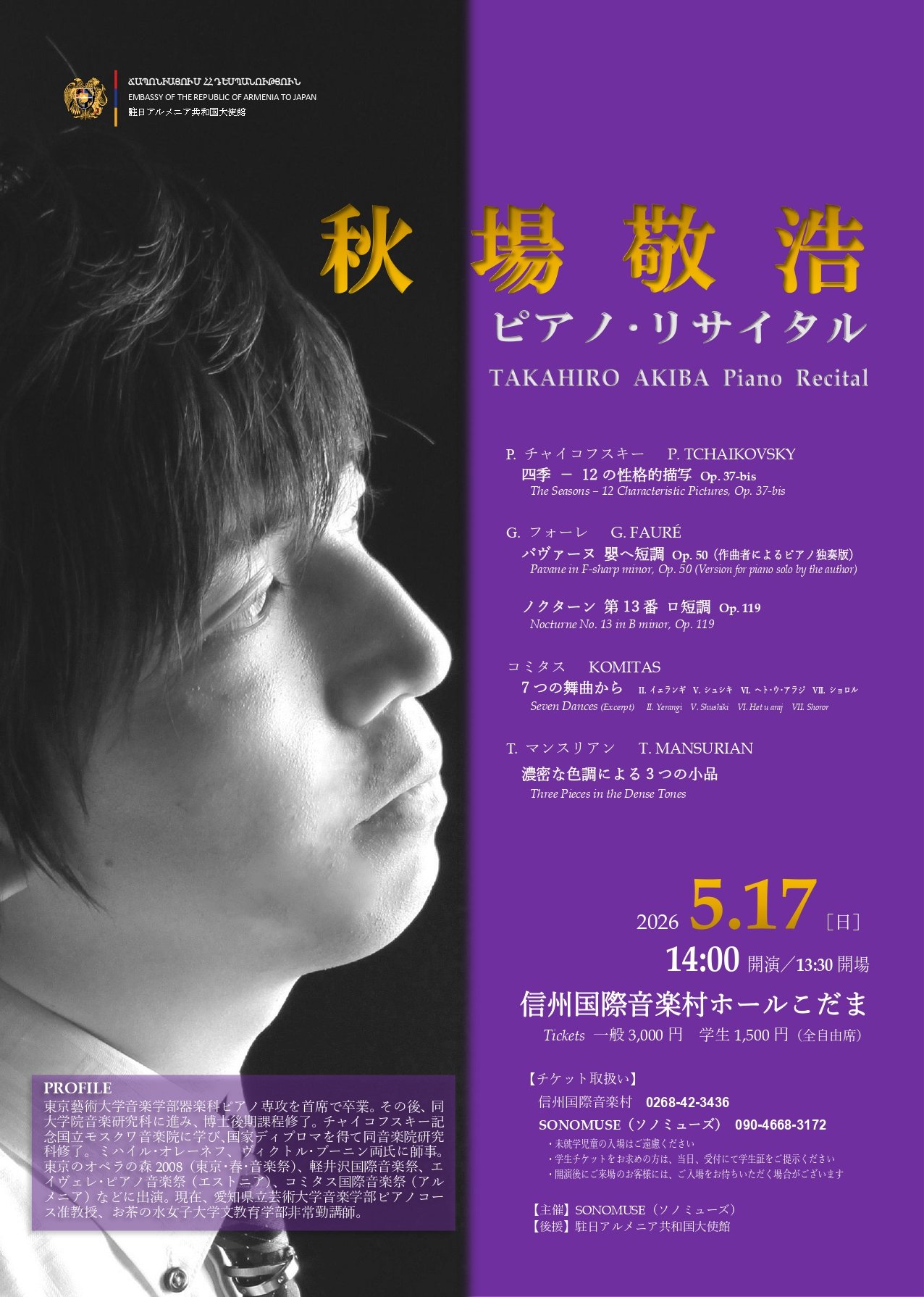 本学の秋場准教授が、ピアノリサイタルを開催します。