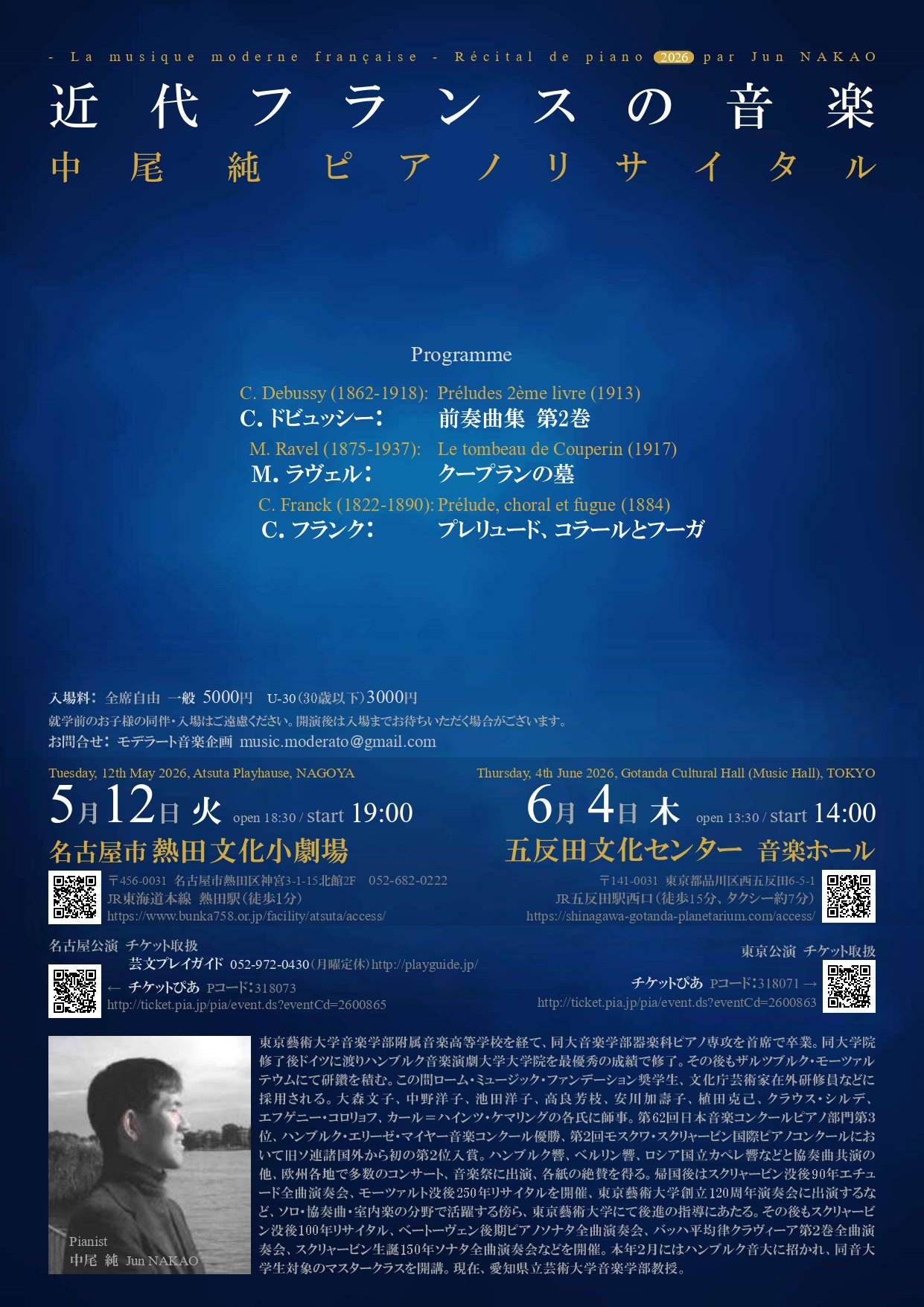 5/12開催 ~近代フランスの音楽~中尾 純 ピアノリサイタル - La musique moderne française - Récital de piano 2026 par Jun NAKAO